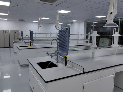 2.全鋼試劑架:采用1.0-1.2mm厚(鍍鋅鋼板/冷軋鋼板/電解鋼板/不銹鋼板),表面經過高溫環氧樹脂靜電粉末噴涂,層板為基材折彎焊接成型,可任意調節位置,可配載中央吊柜等其他特殊儀器裝備功能,能布置氣體管路、電源、水源相關配套設施;多功能線槽具有導線、擋水、多功能應用、整體美觀、使用安全等功能特點。